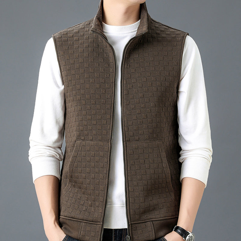 CLEAN, CRISP, TIMELESS - Sharp lines, a tailored fit, and a minimalist collar give this vest a polished edge that never goes out of style. It’s the kind of piece that quietly elevates everything else you wear—effortless sophistication, zero fuss.